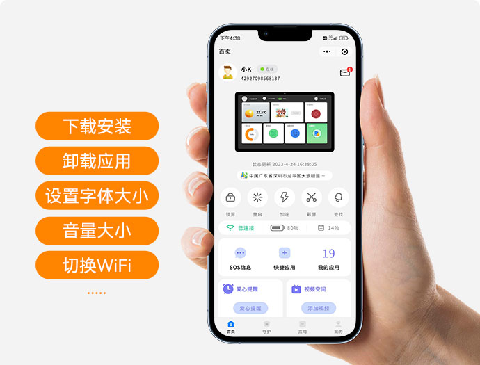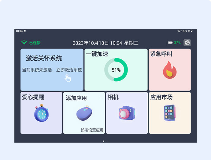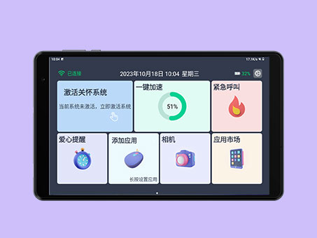 可选购老人关怀版平板,适配数十项贴合老人易用性老人关怀子系统2。完美的大字体,手机端远程下载管理