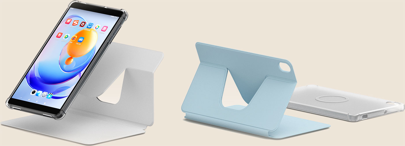 磁吸皮套提供多种角度支撑,横屏浏览,竖屏刷抖音,尽在掌握,更可取下皮套,配上智能磁环随手一贴,墙上也可精彩!