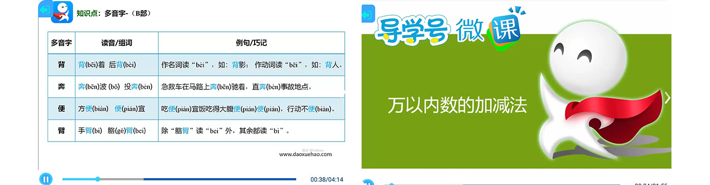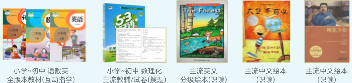 2.覆盖科目:基于小学和初中的语文、数学、英语教材。