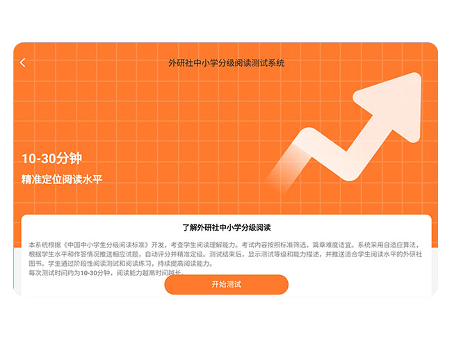 1.功能:提供阅读等级评测,测试后给出明确的阅读等级和推荐阅读图书。