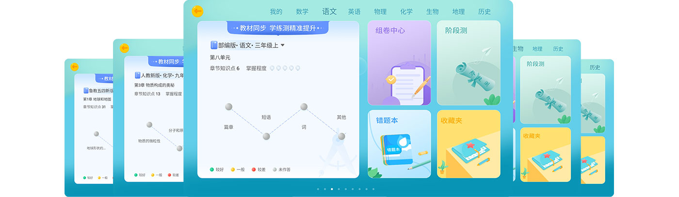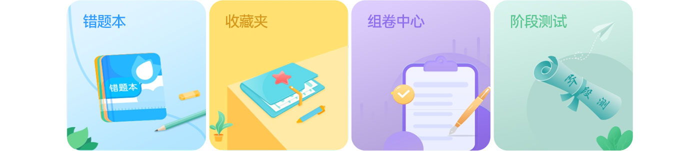 覆盖全科,全教程,还有组卷中心,阶段测,错题本加持!每个知识点,每个学科,全面覆盖。