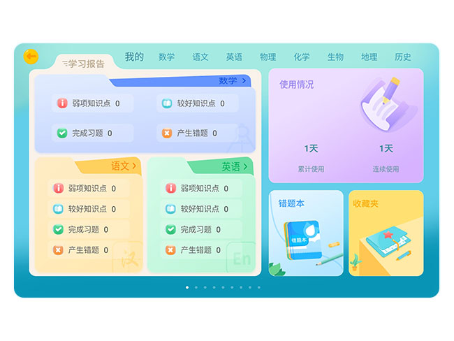 各项学科弱项知识点,较好的知识点,习题完成情况,错题量等。帮助学生更系统的学习全面提升。