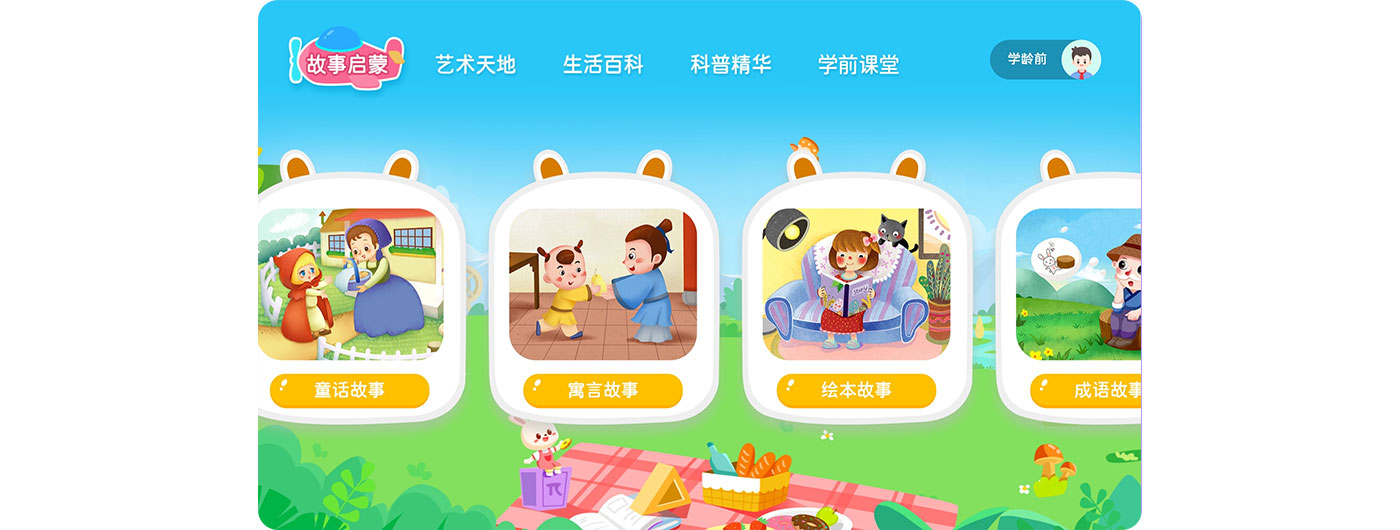 启蒙故事、艺术天地、生活百科、科普精华、学前课堂应有尽有。