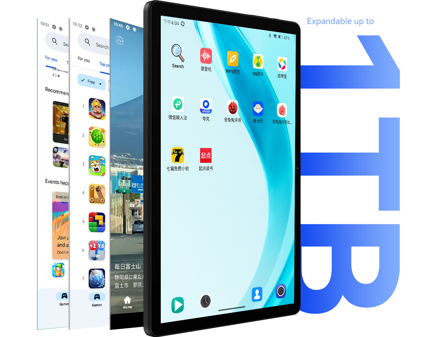 小酷平板2S为你配备了4GB运行内存,至高可扩展8GB虚拟内存,12GB融合大内存让平板轻松在更多App间顺畅切换,告别卡顿,享受疾速流畅的操作体验;128GB大存储空间,音乐、照片、电影,让你不再为内存不足感到焦虑。此外,小酷平板2S更支持最高512GB容量TF卡扩展存储空间,满足你更多使用需求。