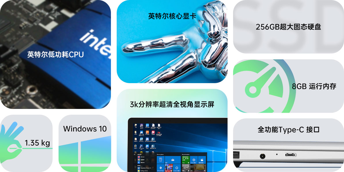 3k分辨率超清全视角显示屏,更多的像素节点就是更多的细节,3倍的沉浸式体验绚丽的色彩与逼真的影像细节完美结合,不论是你学习文档,还是在工作中撰写PPT,上网浏览网页都是无与伦比的体验。