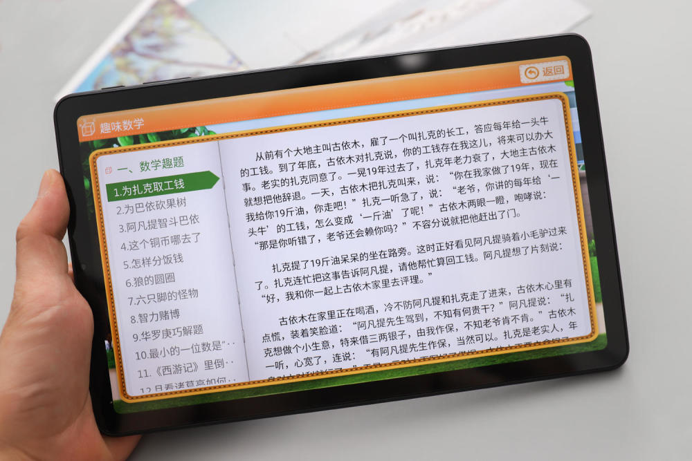 除了同步辅导以外,酷比魔方S1教育版小学系统中还有一些趣味阅读和拓展学习,比如这个趣味数学,就通过讲故事的形式来引导出数学问题,培养小朋友们学习数学的兴趣;再强调一遍,这些统统免费,要知道现在市面上一节小升初的补习课就要好几百块了, 有了酷比魔方S1教育版,真的省了很多钱!