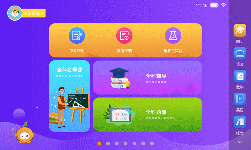 来到中学教育阶段,小朋友们的学习辅导更是一刻也马虎不得,毕竟一分就可以干掉一千人。但是这个阶段的学习越来越难,很多家长都有心无力,帮不了孩子什么。不用担心!酷比魔方S1教育版中学系统里拥有中高考冲刺辅导、全科辅导、课外辅导、理化生实验、全科题库、综合/公式、诗词/阅读理解、词典/文学等全面课程,配套相应的知识讲解和针对训练,帮助孩子全方位查漏补缺,哪里不会补哪里!