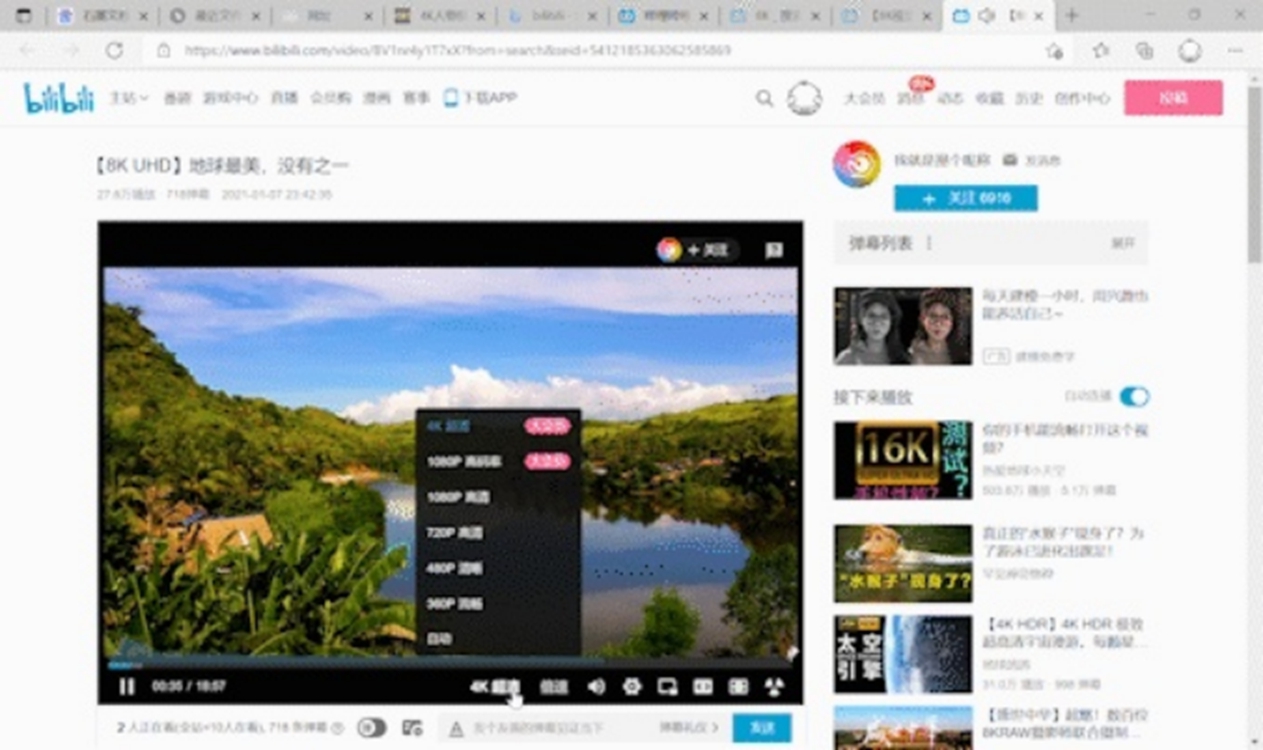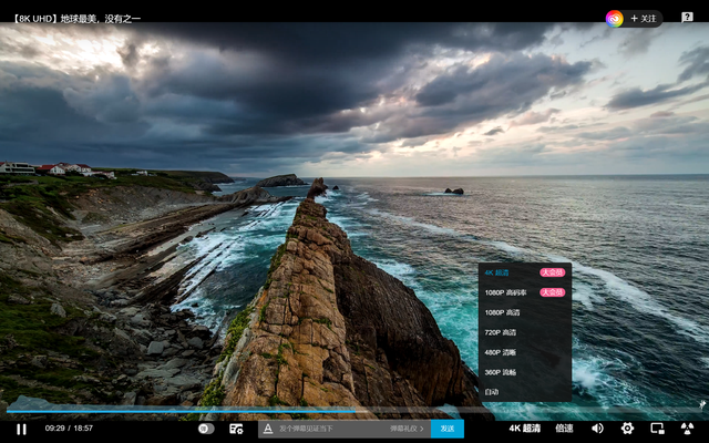 去哔哩哔哩找到一个真4K风景视频测试,可以看到屏幕显示的色彩在这个价位上是比较优秀的,整个色彩还原度贴近现实看得比较舒服。