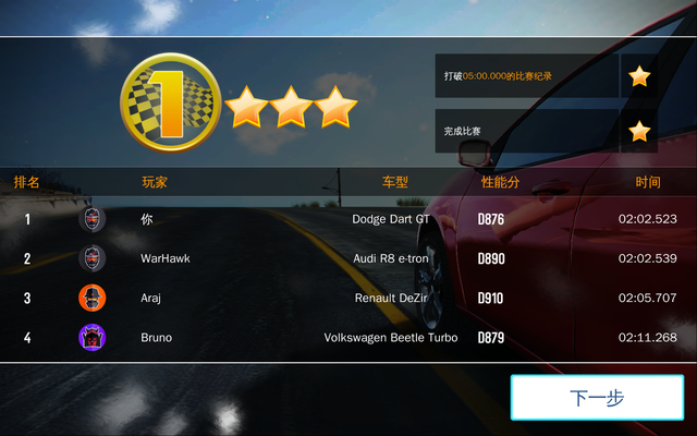 来玩一下《狂野飙车》,在加载的过程中没有出现卡顿,可是一进到游戏稍微有一点卡顿掉帧,在游戏比赛的过程中有轻微的卡顿现象。