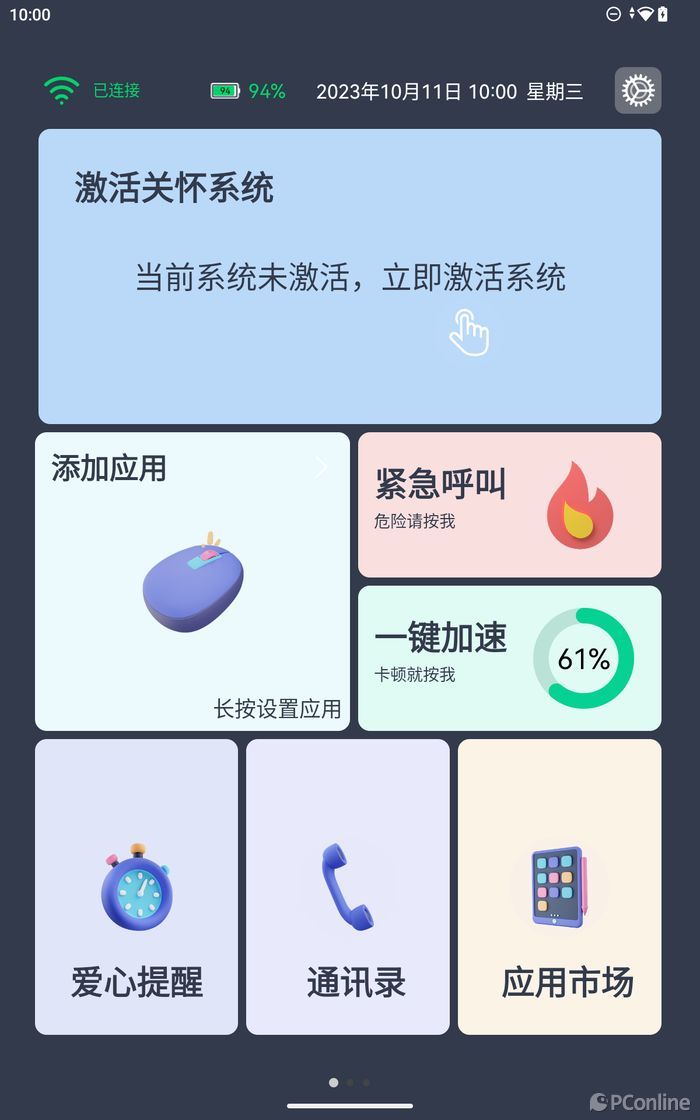 而对于老年人来讲,使用电子产品也是有着不少的困难,就在今年四月份,中国消费者协会发布的《2022年养老消费调查项目研究报告》中指出,近六成老年人使用电子产品有困难。如何让老年人可以更顺手的使用平板电脑呢?在老人关怀系统中,首先你可以发现相当简洁的UI界面:采用大字体大图标的人性化设计,清晰直白,初次上手的长辈也能看得懂,更有利于他们去操作使用。