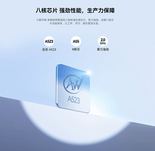 酷比魔方小酷平板青春版搭载了一颗强劲的八核疾速处理芯片,为你提供强大的计算能力。不论是办公工作,学习任务还是娱乐媒体,都能轻松应对。更令人惊喜的是,这颗芯片的超低功耗设计,不仅能够保证高性能的同时节省能源,让你的使用更加持久。