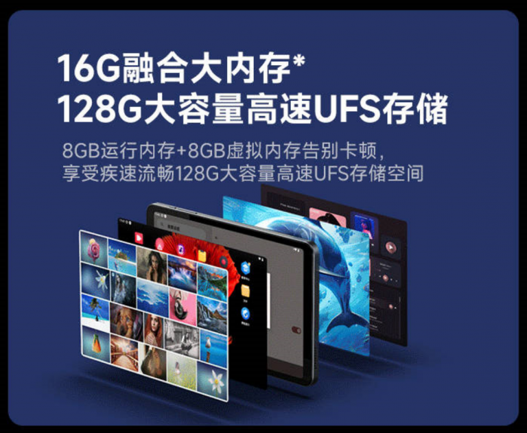 此外,这款平板还配备了8+128GB 的内存组合,至高可扩展8GB的虚拟内存,并且支持512GB容量TF卡扩展。这样的存储组合足以满足大多数用户的需求。