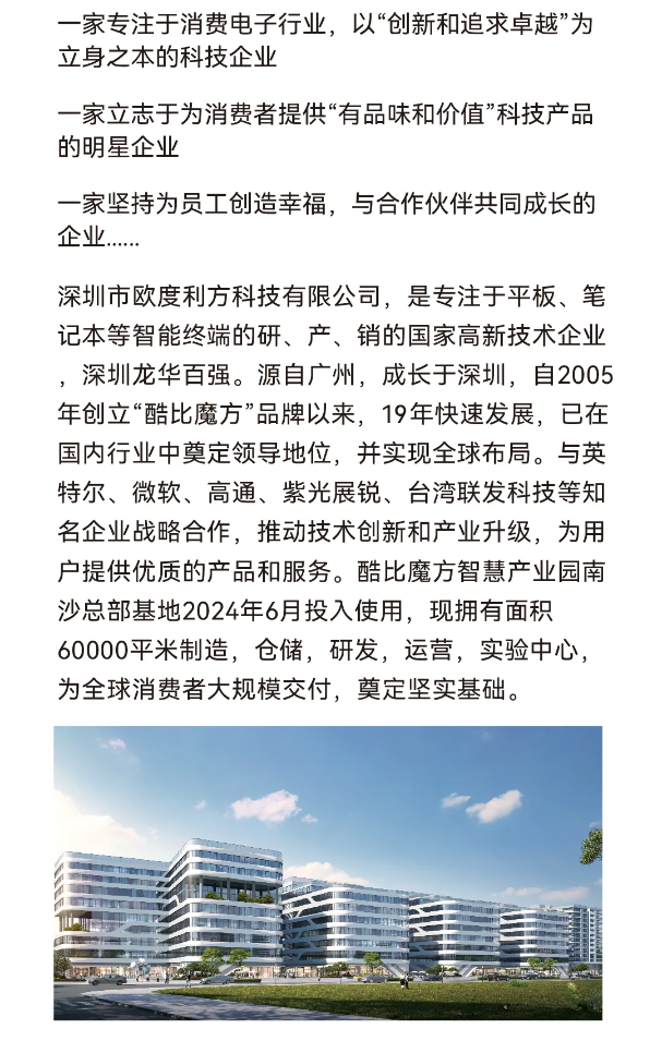 6月2日酷比魔方智慧产业园即将正式开业,产业园坐落于广州南沙区,作为一家以创新和追求卓越为宗旨的企业,酷比魔方一直致力于为消费者提供有品味和价值的科技产品。