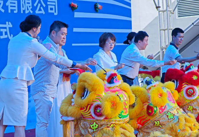 开业投产仪式活动现场,来自广东的中华专业舞狮队,为今天的盛典,准备了一场别开生面的舞狮表演。狮子们身姿矫健,舞动着优美的舞姿,伴随着鼓声和锣声,将现场气氛推向了高潮。