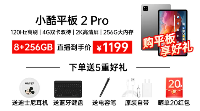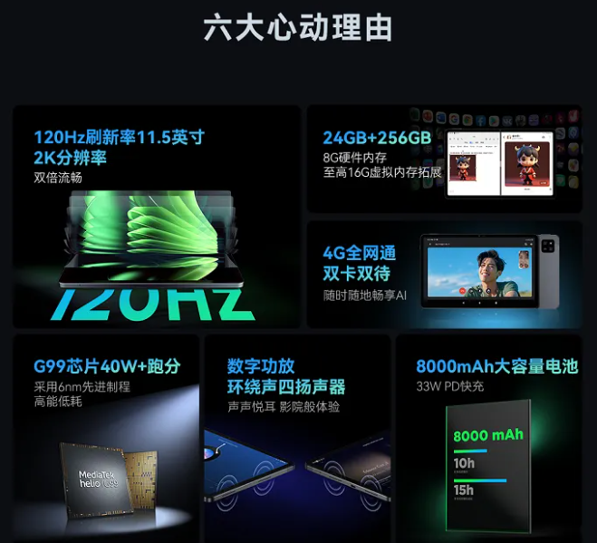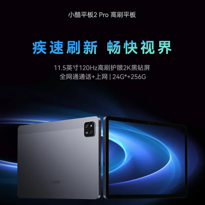你们期待已久的小酷平板2 Pro终于来了!这款全新发布的高刷平板,将以其独特的11.5英寸120Hz高刷护眼2K黑钻屏,全网通通话+上网功能,以及24G+256G的超大内存,重新定义你的视界体验!