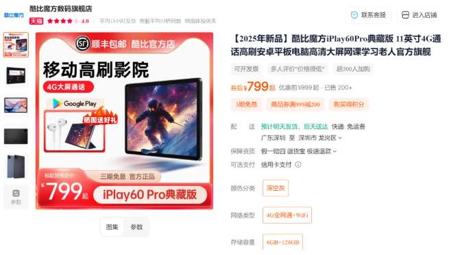 酷比魔方 iPlay 60 Pro典藏版 平板电脑,凭借11英寸全视角黑钻护眼屏、90Hz高刷新率、旗舰级性能与震撼音效,成为千元档位的性价比王者,iPlay 60 Pro典藏版仅799元,现更有晒单送皮套+耳机的活动,点击购买