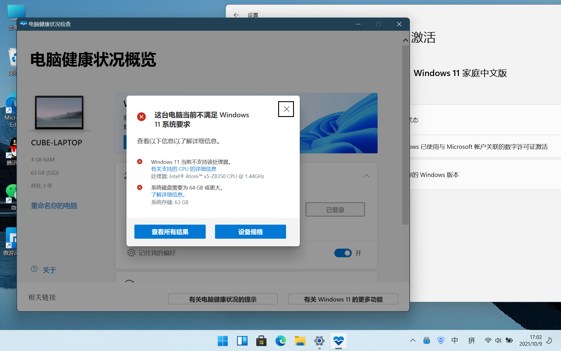 2. 酷比魔方iWork10Pro从Windows 10家庭中文版更新到Windows11 家庭中文版
