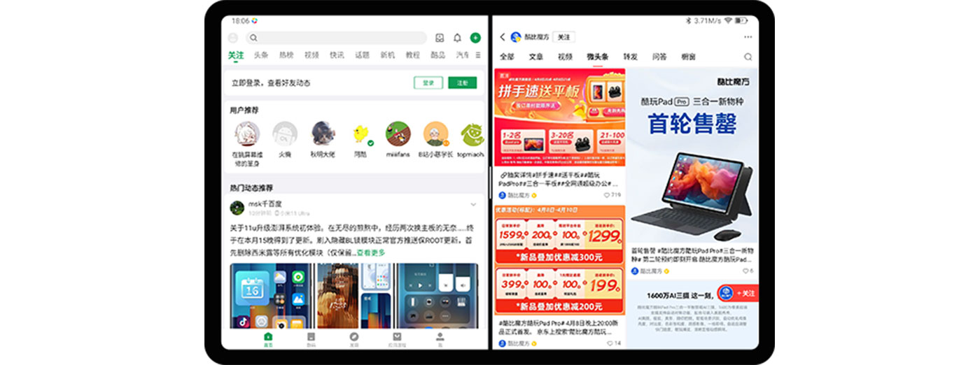 全新平板定制系统,不只是针对竖屏界面的简单拉伸,而是通过多重组合自适应的横屏界面,全面发挥平板的显示效率,让更多自带或三方应用都能获得超越以往的高效浏览体验。