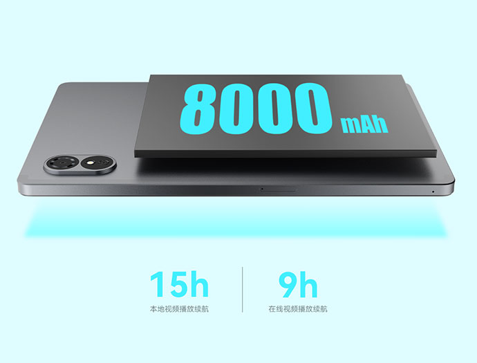 我们在小酷平板2 Lite纤薄的机身里内置了一块8000mAh的大容量电池,得益于八核处理器先进的制程工艺和智能省电技术,让机器的在线视频播放续航时间达到9小时,本地视频播放续航时间达到了惊人的15小时。