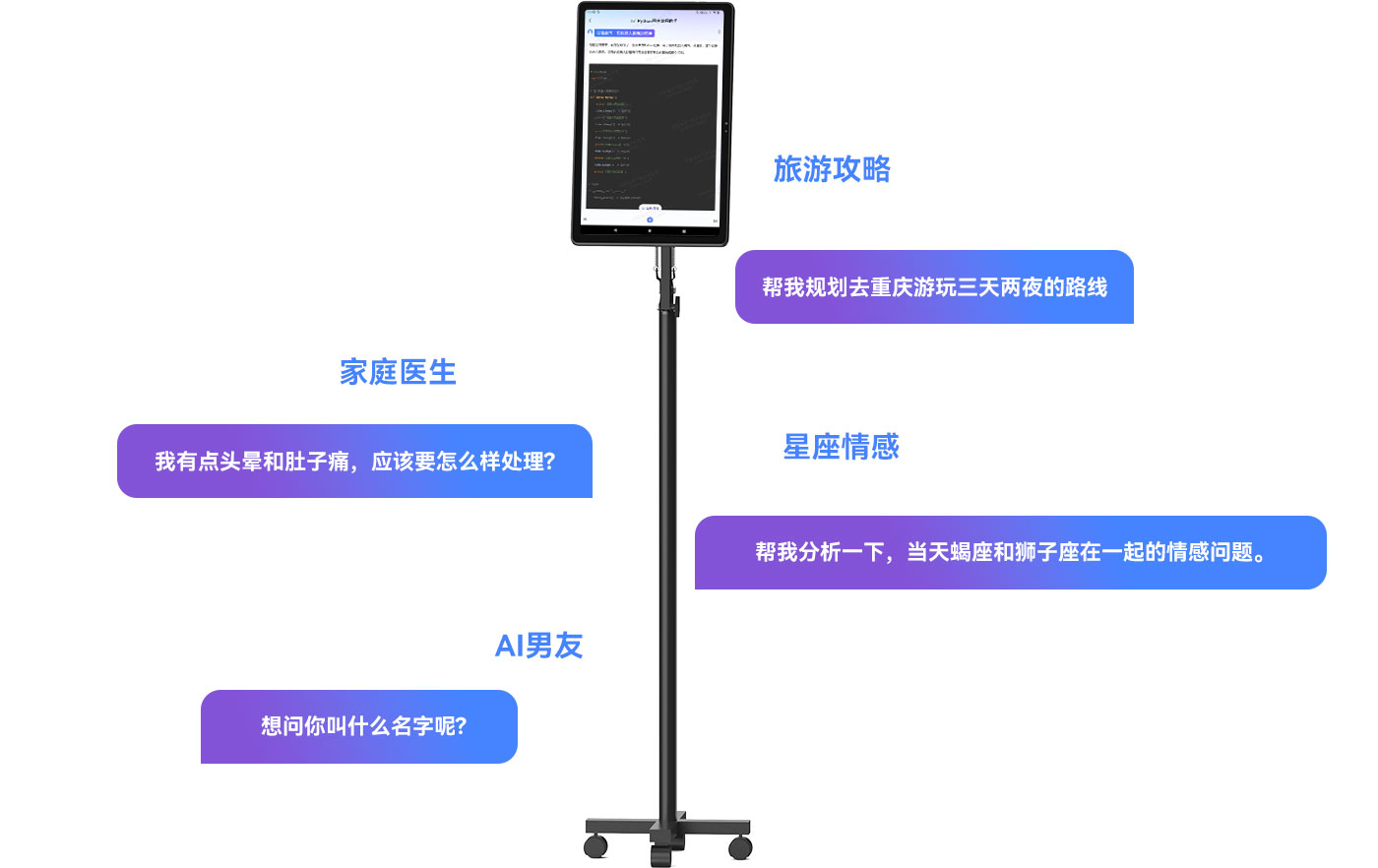 支持安装讯飞星火,文心一言等AI大模型,能提供个性化的聊天机器人服务。还可以帮助用户写编程代码、旅游规划、星座情感问答等等。