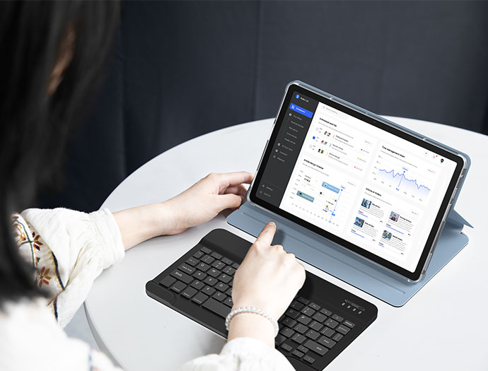 适配超薄蓝牙键盘让你的平板电脑秒变电脑,它支持超长待机时间,让输入更舒适。这款蓝牙键盘还支持兼容多系统的使用,除了连接平板电脑,你还可以用在Windows、iOS以及MAC系统上,一个小键盘,轻松连接你所有的智能设备。