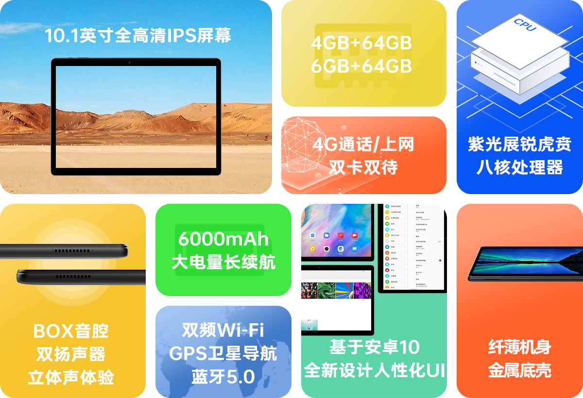 酷比魔方iPlay 20S支持中国移动、中国联通、中国电信等三大运营商的双4G通话/上网*,支持VoLTE高清语音通话,通过4G网络你可以随时随地使用平板进行刷抖音、玩游戏、看视频、微信聊天、刷微博,或下载喜爱的应用。