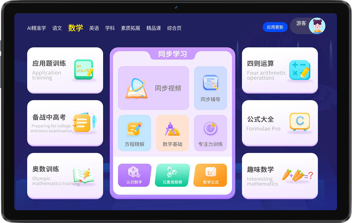 酷比魔方iPlay50 可选购安装酷比魔方适配的教育软件2。同步课程名师资源,在线教学视频、科目同步辅导,家长在家就能辅导孩子学习,畅享多位名师教育资源。系统自带的儿童模式,覆盖儿童/小学/初中/高中不同阶段的学习内容。名师讲解,更有AI题库,可以让孩子提分,中考高考再也不怕孩子学习不好了!让孩子健康成长、高效学习