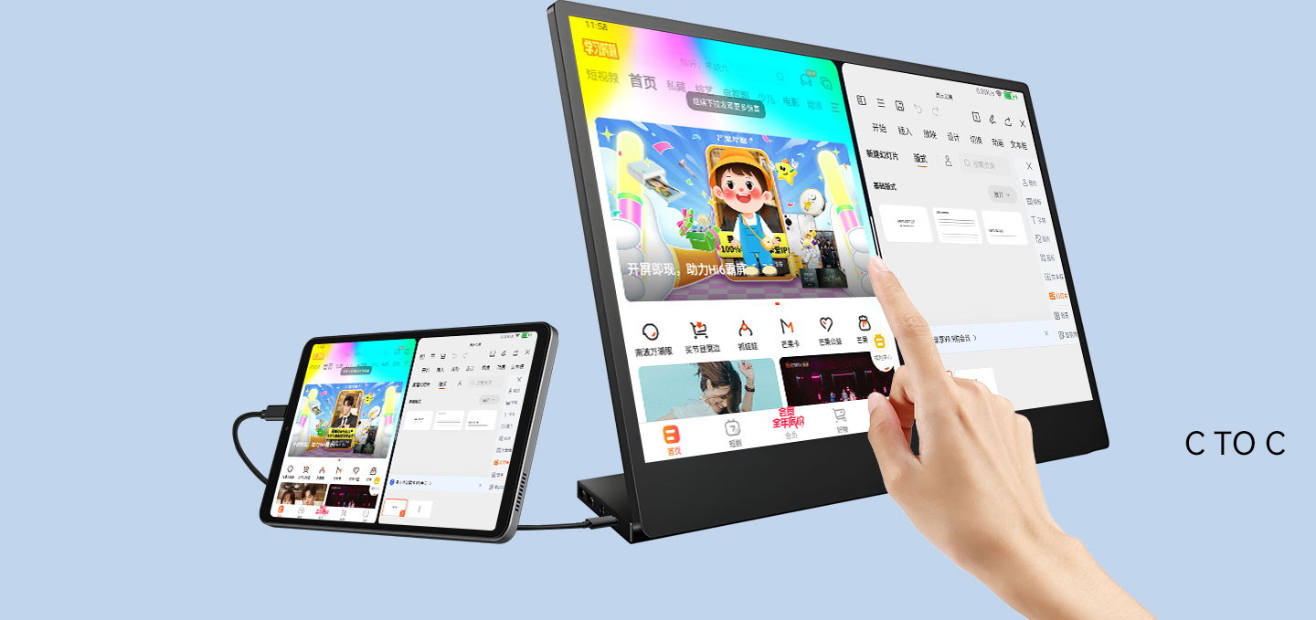 小屏接入21.5英寸触摸便携式显示器,双屏触摸,蓝牙键鼠,生产力拉满。