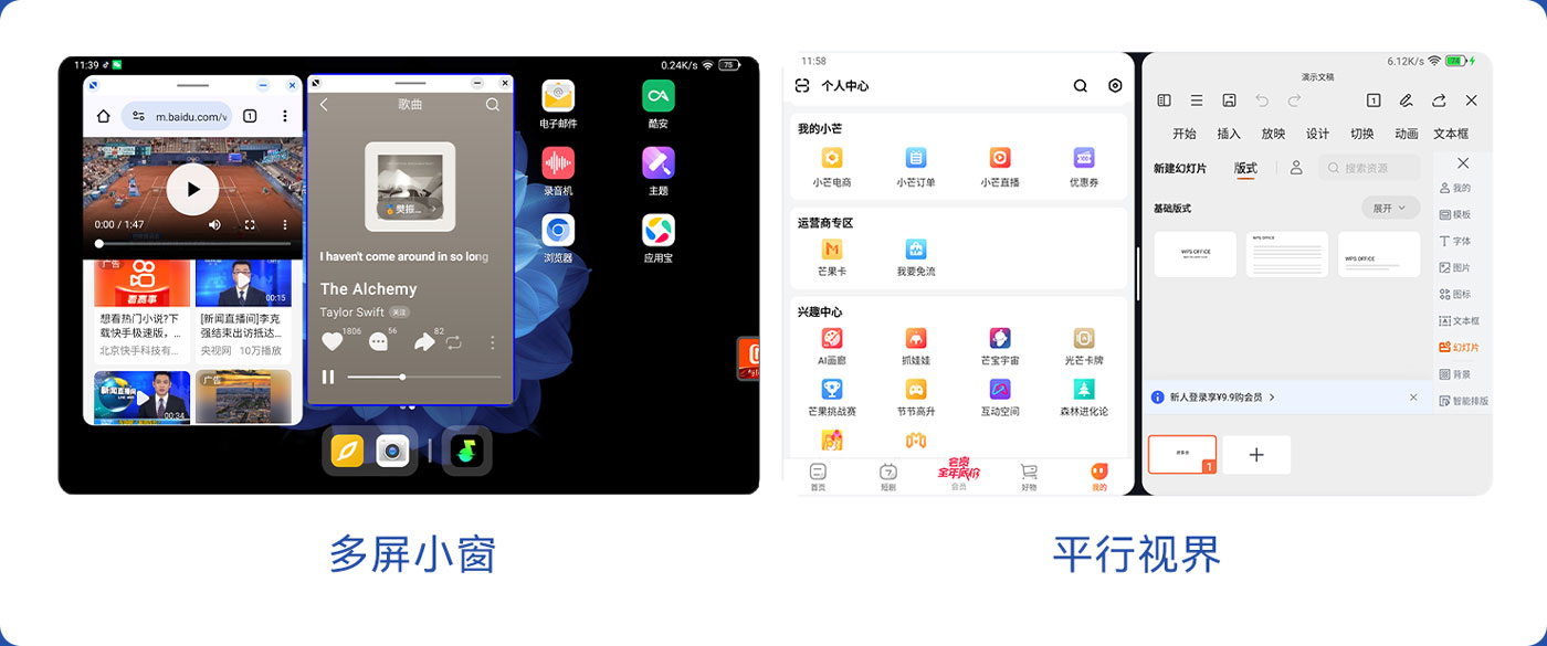 掌玩mini 2搭载基于安卓14系统深度定制的ALLDOCUBE OS 3.0,运行速度更快,丝滑顺畅,还支持人性化的平行视界、横屏显示、三指截屏、多窗口分屏、阅读模式、护眼模式、深色模式等细节功能,体验更出色。