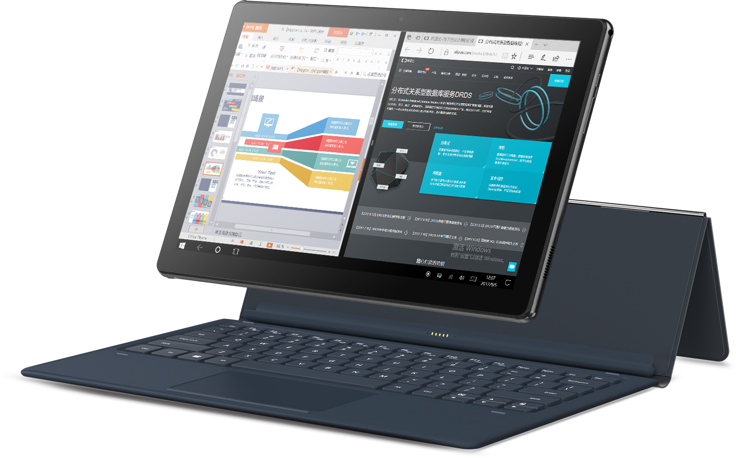 打开键盘上内置一体式支架并扣入KNote 5 Pro,即可转换为笔记本模式,轻松工作愉快办公,合上支架移除键盘盖,即可获得强大的智能英特尔平板。