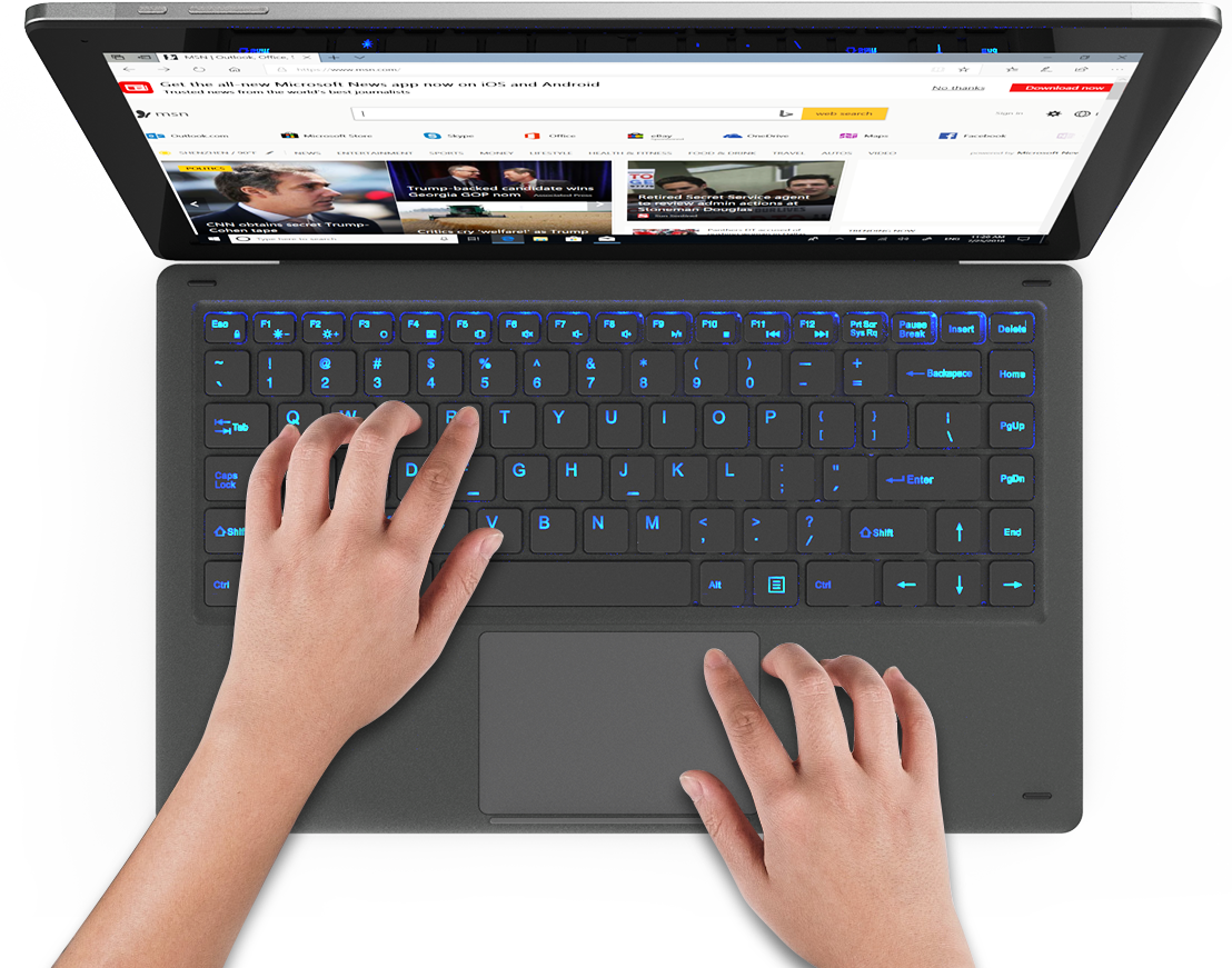 KNote X Pro专用皮套键盘搭载冰蓝色背光设计,亦可通过键盘轻松调节背光亮度,让你的KNote X Pro即使在夜间使用也方便舒适。