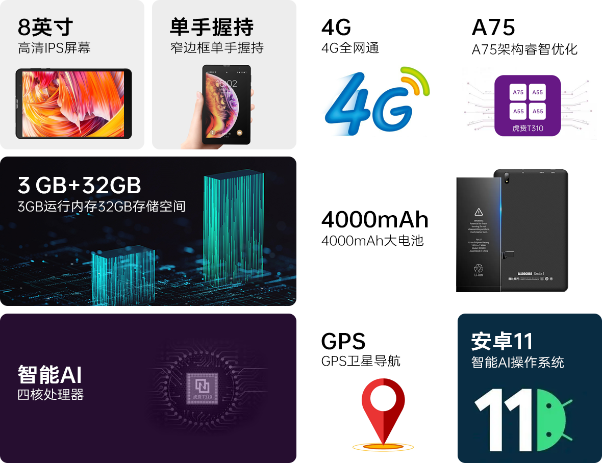 Smile 1拥有一块8英寸高清全视角IPS屏,不但拥有178°可视角度,更有出色的色彩表现能力,让你能在这块屏幕上感受更精彩的视觉盛宴。
