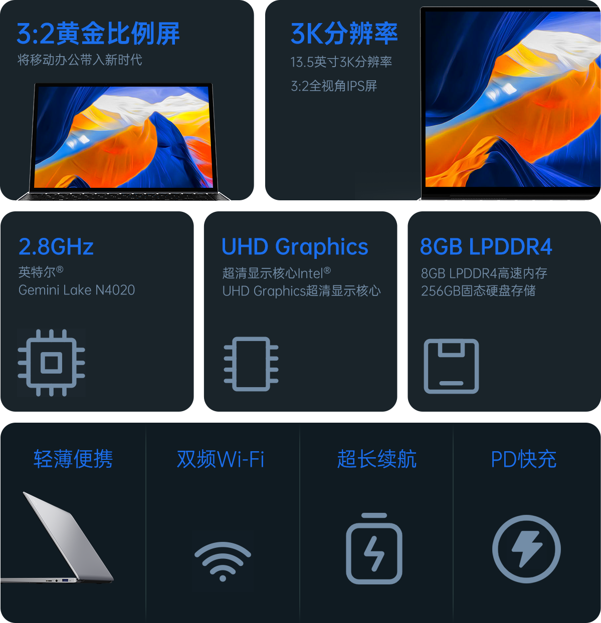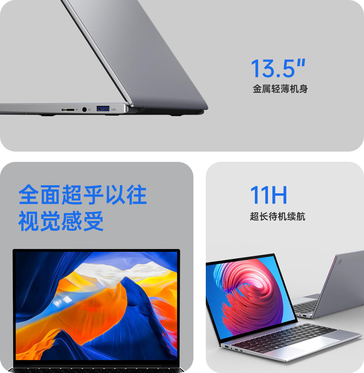 13.5"的酷比魔方Stream Book,轻至1.3kg,你可以随时单手拿起或是放进包里,都不再成为负担。